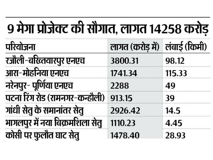 9 मेगा प्रोजेक्ट की सौगात, लागत 14258 करोड़